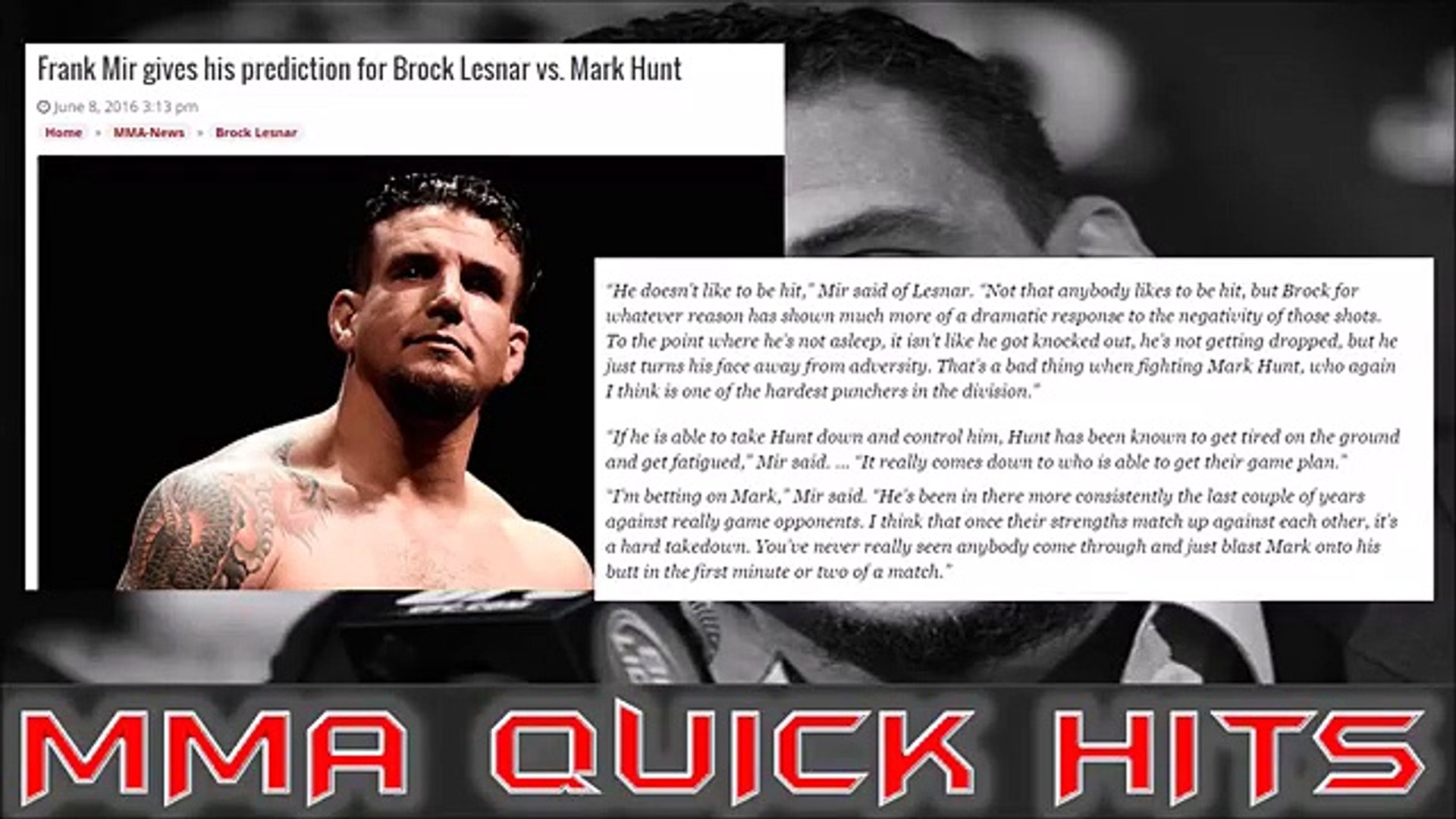 It's about ufc 100,the megafight where brock lesnar took his much awaited revenge by beating frank mir as the undisputed. frank mir has the best ground game suited for mma i think this is his for the taking against the over hyped roid freak. Frank mir truely is the gem of the industry. Lesnar i fight video, highlights, news, twitter updates, and fight results. Gaining top position, lesnar continued to work his top control and keep mir pinned to the mat.